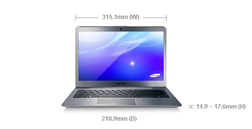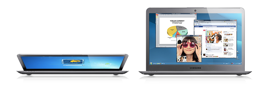 Carrying a heavy notebook is always a big burden, especially for professionals who are always on the road. The Samsung Series 5 ULTRA is amazingly portable and perfectly designed for a mobile life. Because it's remarkably thin (14.9 ~ 17.6mm) and light (1.49kg with SSD / 1.52kg with HDD) it's easy to take it with you anytime and anywhere - so you'll always have your own office.