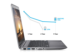 Now you need never worry about unexpectedly having to stop work. The Samsung Series 5 ULTRA delivers up to 7.0 hours* of power on a single charge. So whether you're on a flight or at your favourite café you can stay focused on your work - or having fun! And Samsung's BatteryLife Plus technology extends the battery life up to 1500 cycles / 3 years.