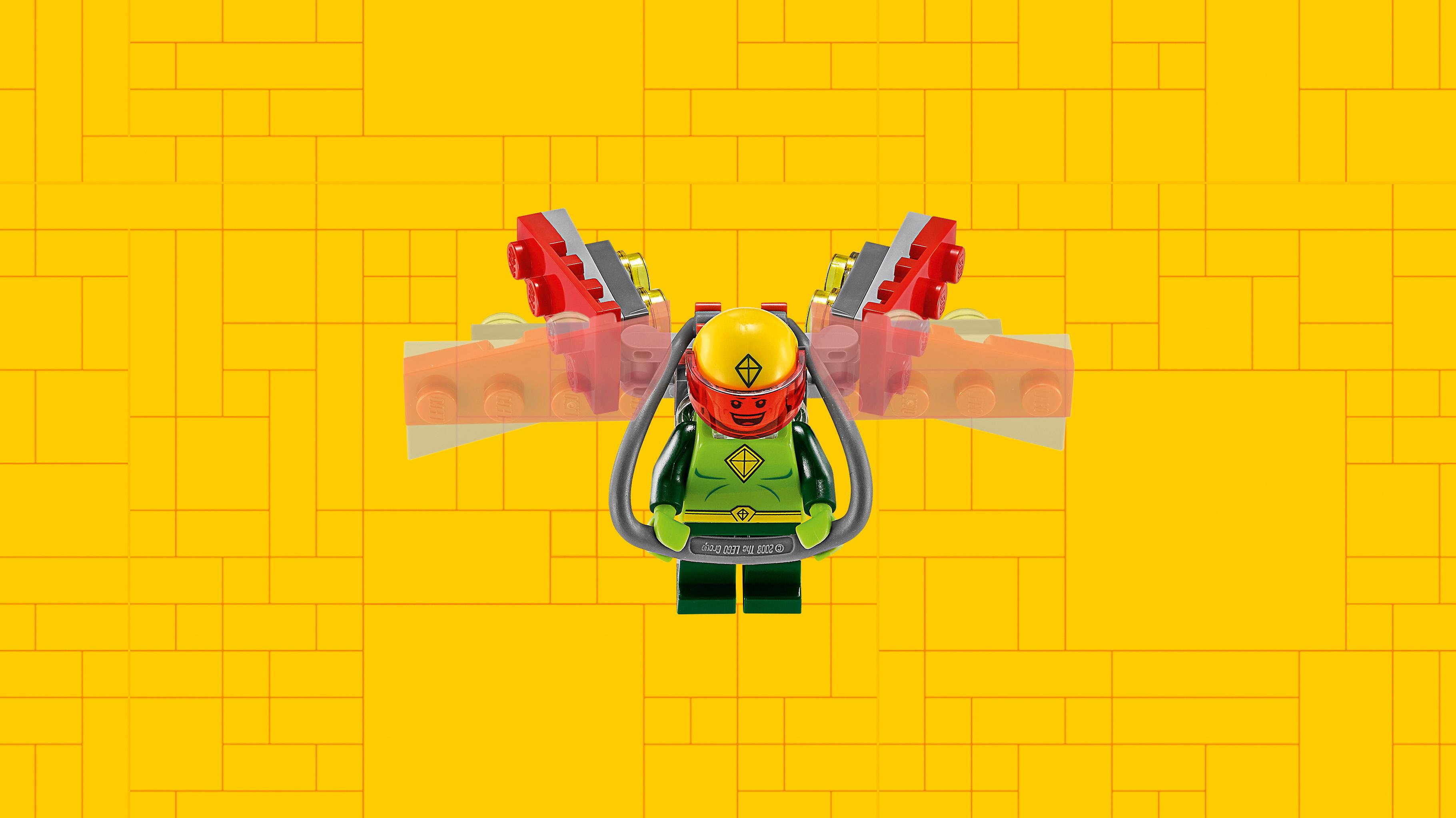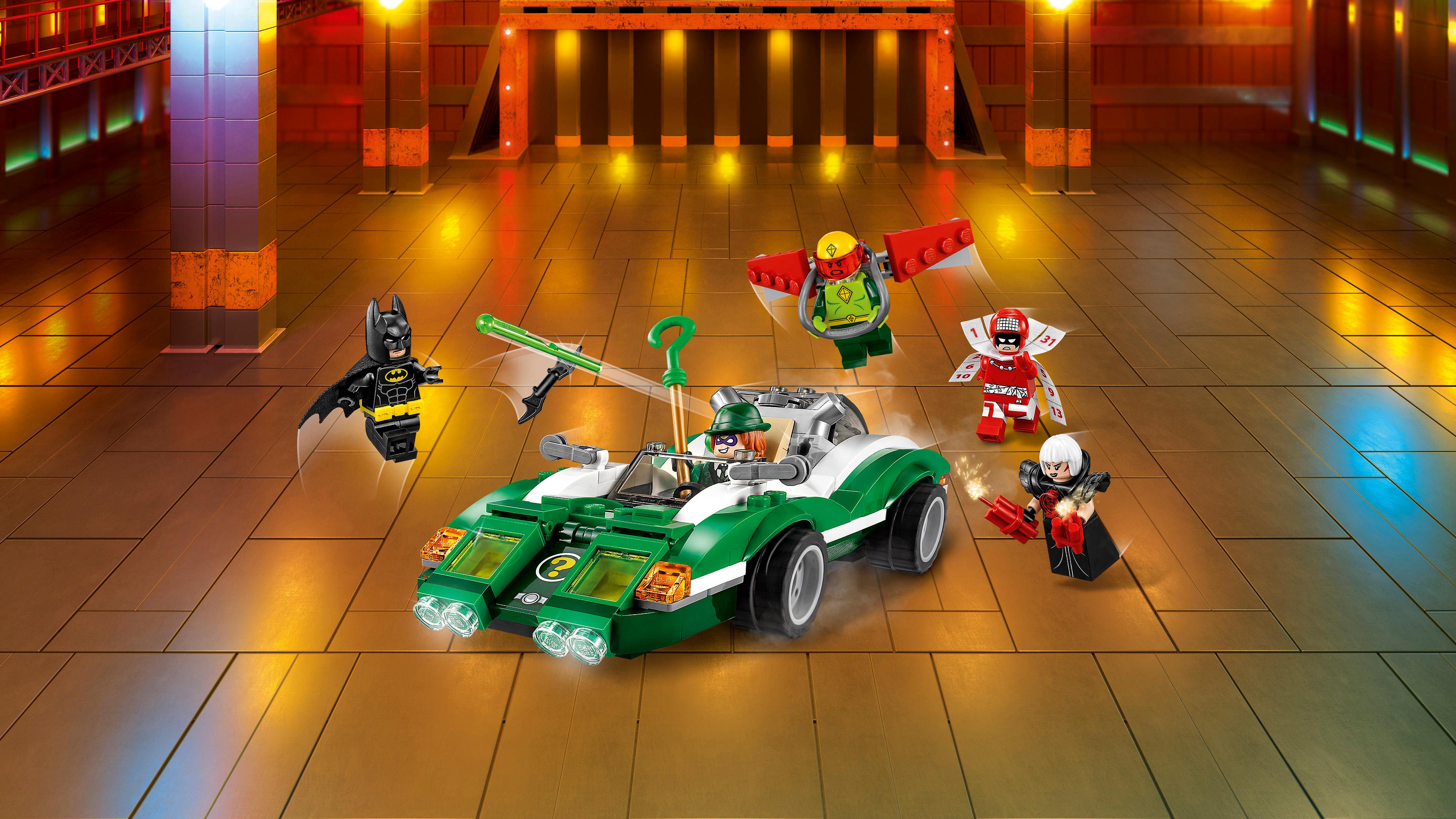 Battle with Batman against The Riddler and his allies! The Riddler and Kite Man, Magpie and Calendar Man are causing chaos at the Gotham City Energy Facility. Team up with Batman to take them all on! Beware of the Riddle Racer’s flip-up spring-loaded shooters. Evade the dynamite thrown by Magpie. Dodge Kite Man's swoops from the sky. Then fight back with Batman's Batarang and capture those Super-Villains!