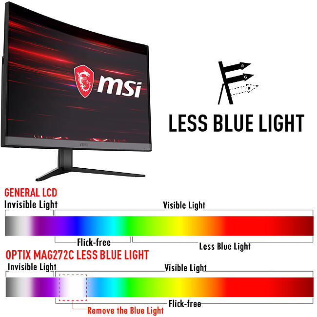 MSI gaming monitors use a curved display panel that has a curvature rate of 1800R, which is the most comfortable and suitable for a wide range of applications from general computing to