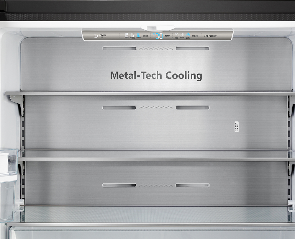 The Metal-Tech Cooling system runs throughout the whole fridge, helping to maintain even and uniformed temperature distribution.