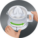 No additional buttons – easy handling by simply pressing down the fruit to start and lifting it off to stop.