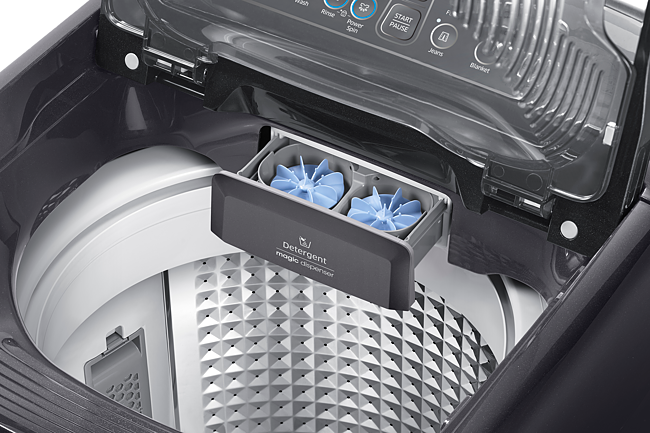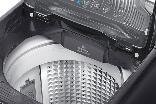 The Samsung washing machine’s lid is designed to open and close smoothly and silently, so there are no unexpected bangs! It also features a tempered glass window, so you can easily view your washing without lifting the lid. And it’s also extremely durable and resistant to scratches and damage, so it will last a long time.