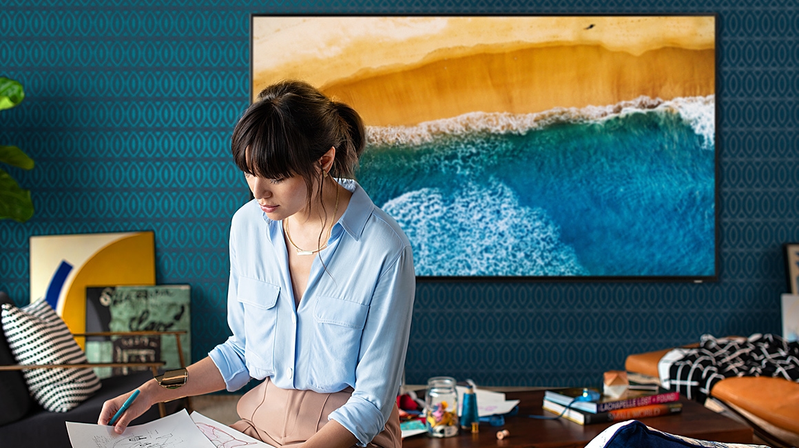 QLED uses a photo of your wall to recreate the pattern on screen. It’s the perfect blend for your décor.