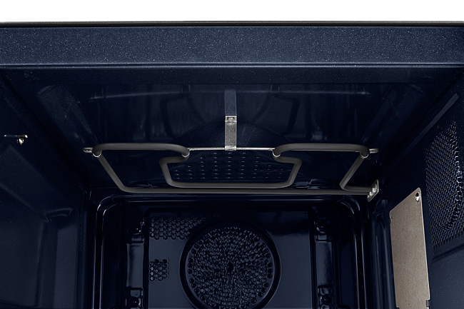 Hot Blast technology is a new method that reduces cooking times significantly. Powerful hot air is blown through multiple air-holes directly onto food, so it’s cooked evenly with a crispy outside, but juicy inside.